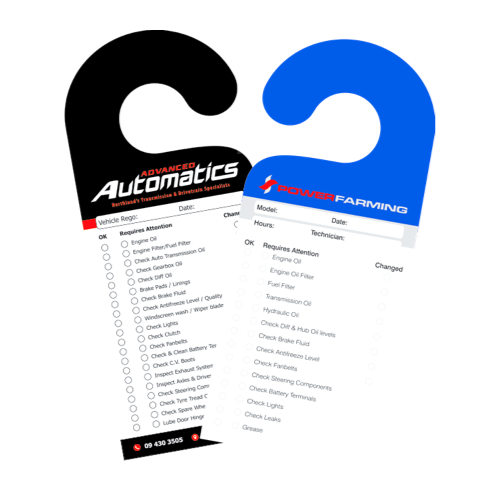 Versatile window hanging cards designed to keep your clients informed. A great way to get your message noticed, up sell your services. Even create specials or package deals that cover similar work processes for increased chargeable time while conveniently leaving your client happy. A value added win-win!
